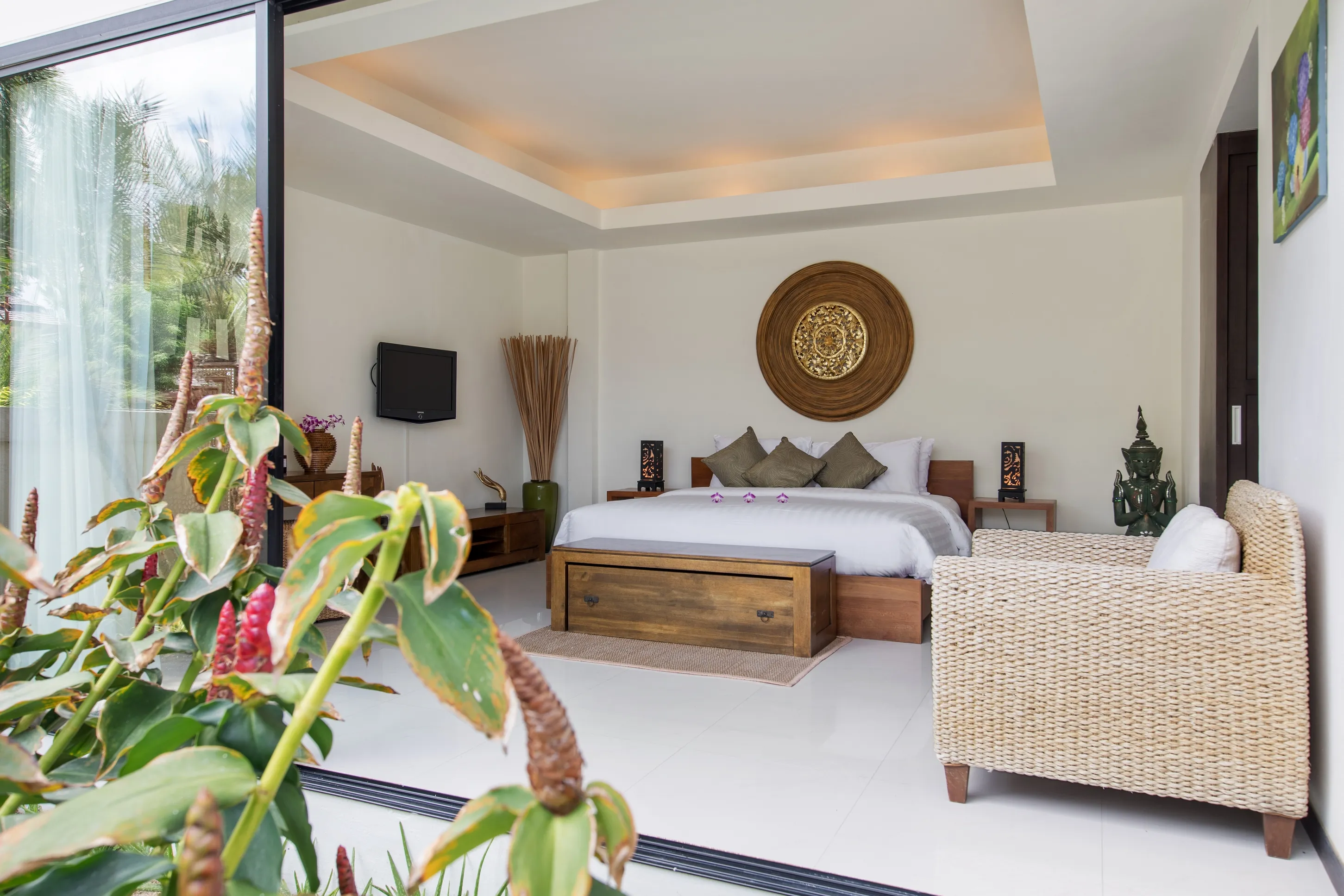 The villa is just a 6-minute drive to Fisherman’s Village, and a 3-minute walk to Bophut Beach. While the shoreline in front of the Dhevatara Residence estate is rocky, a short 200m stroll along the coast brings you to a swimmable stretch of the beach.