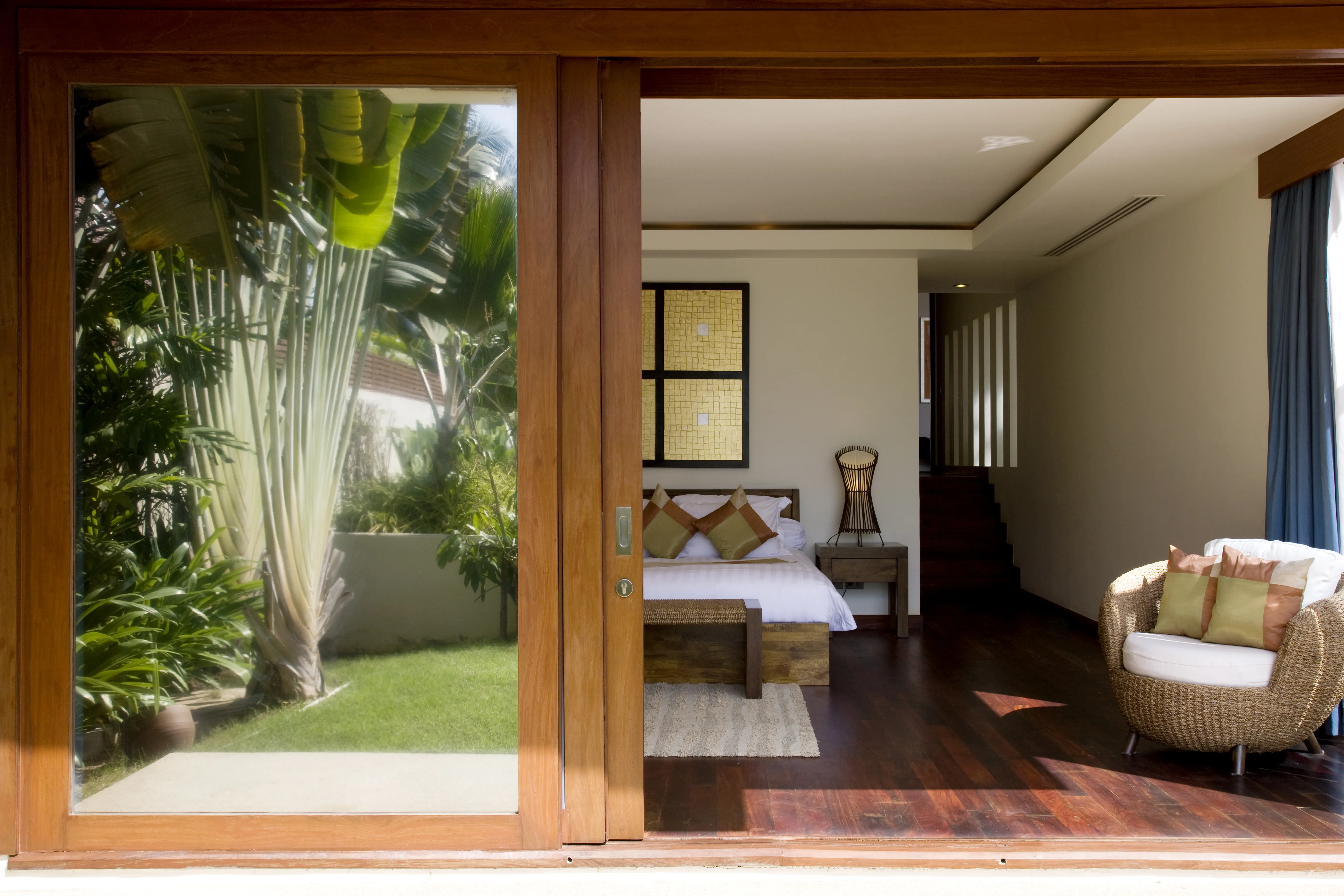 The main living pavilion benefits from a poolside view. Guaranteeing comfort, it comprises a decor of natural materials, high-vaulted ceilings and large glass doors for maximum daylight. It’s fully air-conditioned and has ceiling fans. Settle down on the oversized sofas and watch your favourite shows on the Smart TV. Stay in touch with your life back home by connecting to the free Wi-Fi.